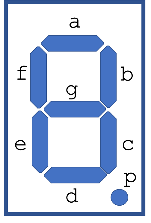 Es un dispositivo opto-electrónico formado por leds que permite visualizar números del 0 al 9. Cada led es un segmento del display y está identificado por una letra (a,b,c,d,e,f,g y p para el punto decimal) como lo muestra la figura 5.